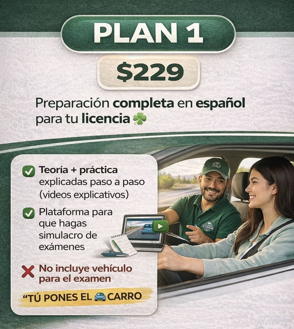 Ofrecemos una guía completa para que el estudiante pueda aprobar su examen teórico y práctico en el DMV, completamente en español 🪪🇺🇸